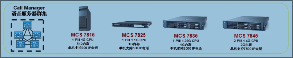 作为整个IP语音通信系统的核心,通信服务器控制全部IP电话和语音网关的注册和呼叫建立、控制的过程。为此思科提供多种可靠性配置和容量配置,客户可根据实际的需求和容量进行选择和配置。